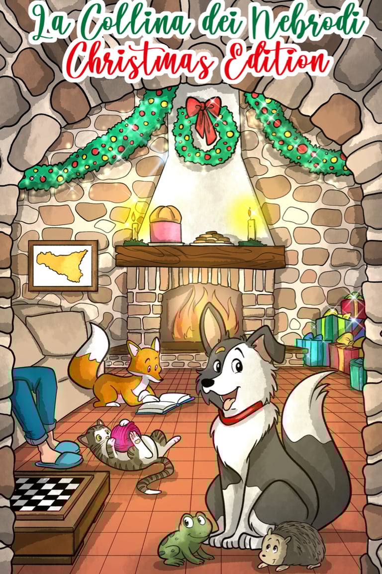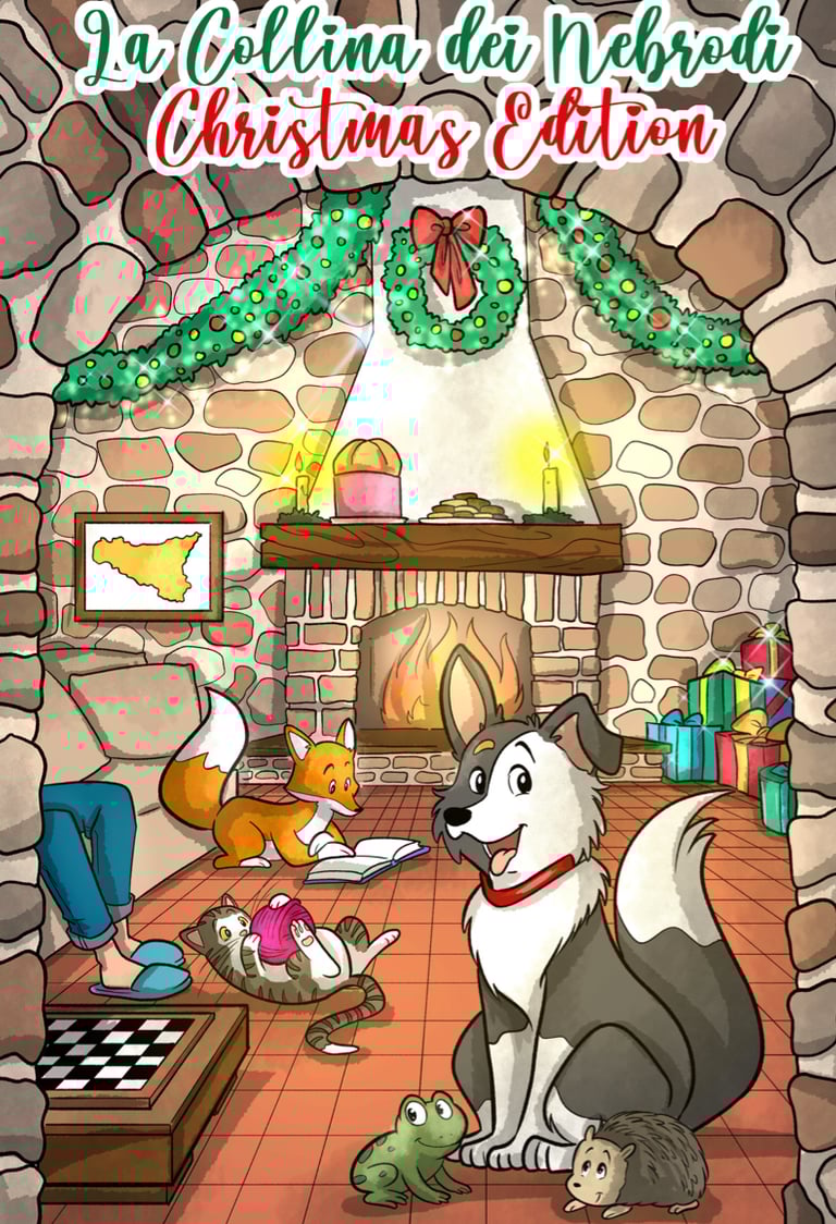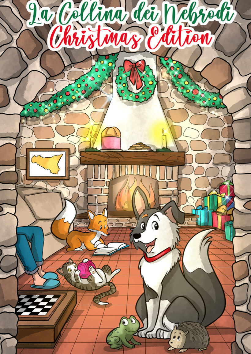 For Christmas, we decided to gift the children staying at the villa a colouring book, titled “La Collina dei Nebrodi, Christmas Edition”. The main character could only be Ciccio, the villa’s border collie.